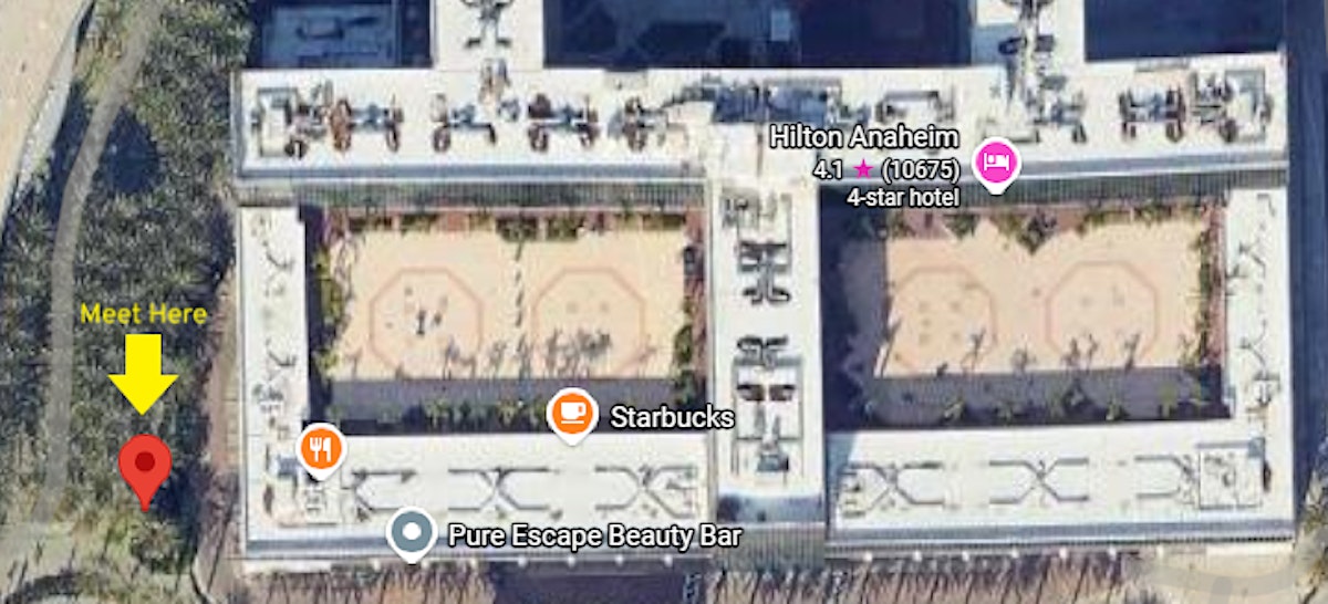 Meet at Saturday 24th January at 8am under shade of palm trees next to Hilton and Anaheim centre: Google Maps