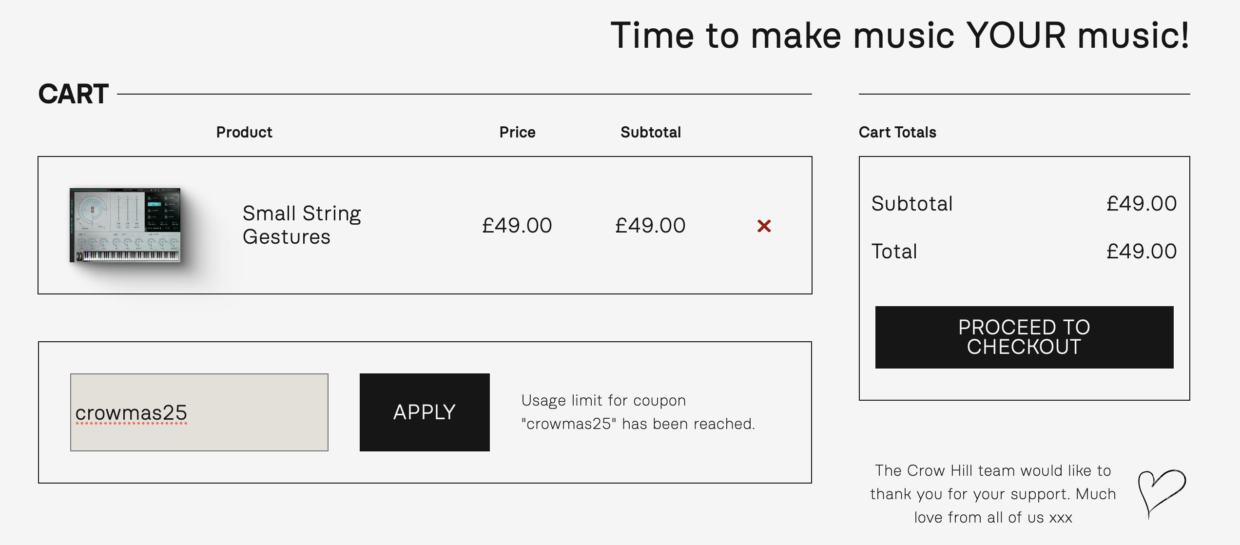 The crowmas25 discount doesn’t work in the store, here’s what I get when ordering,